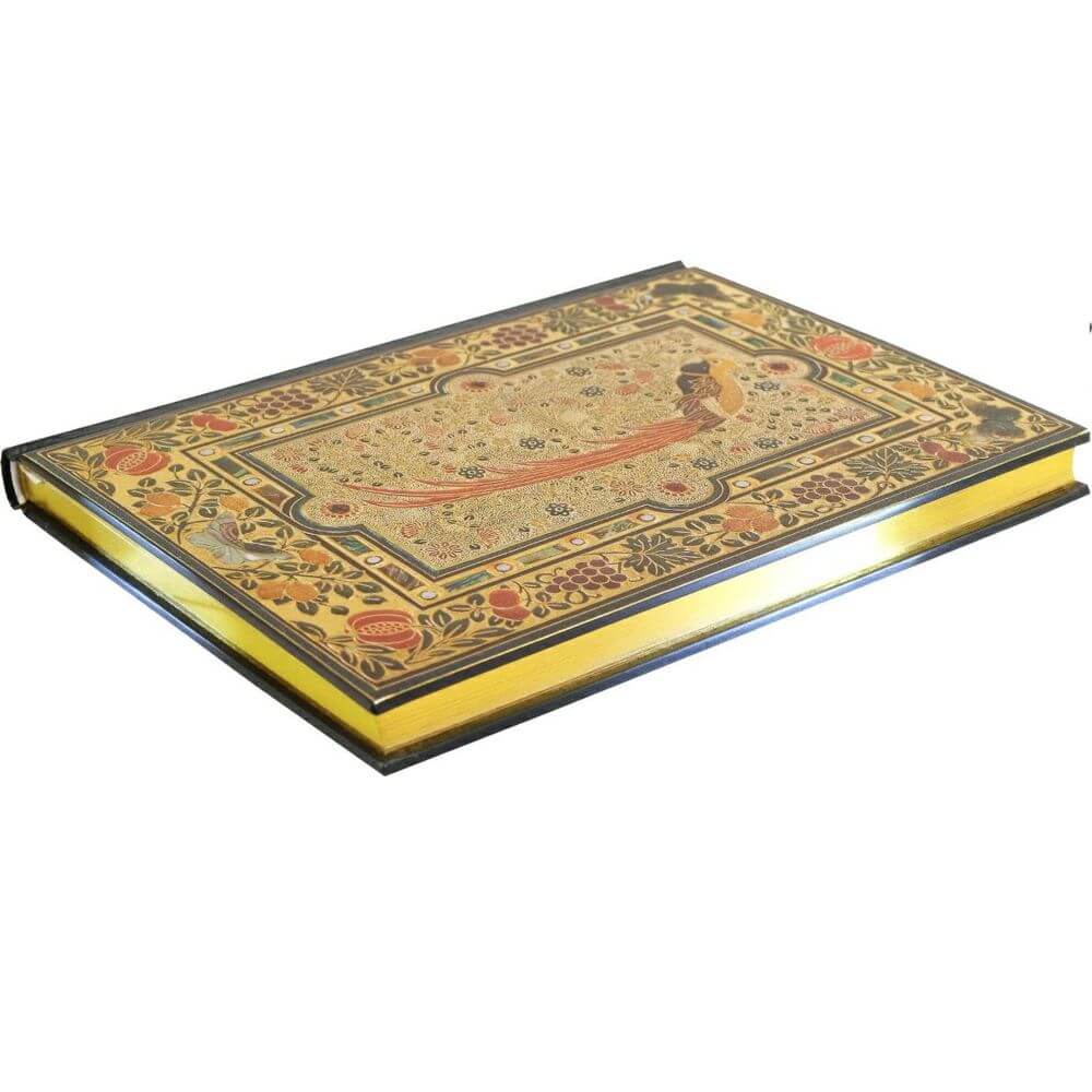 Elegancki notatnik marki Peter Pauper Press – Rajski Ptak (Bird of Paradise). W serii Bookbound Journal każda okładka odwzorowuje dzieło sztuki - w tym przypadku odwzorowanie oprawy wysadzanej klejnotami, stworzonej ok. 1920 roku przez londyńskich introligatorów Sangorski & Sutcliffe do "Raju utraconego" Johna Miltona.