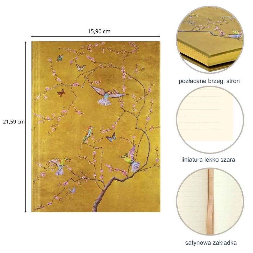 Elegancki notatnik marki Peter Pauper Press – Złoty Lot (Golden Flight). W serii Bookbound Journal każda okładka odwzorowuje dzieło sztuki - ten notes odzwierciedla dzieło Ruth Winding.