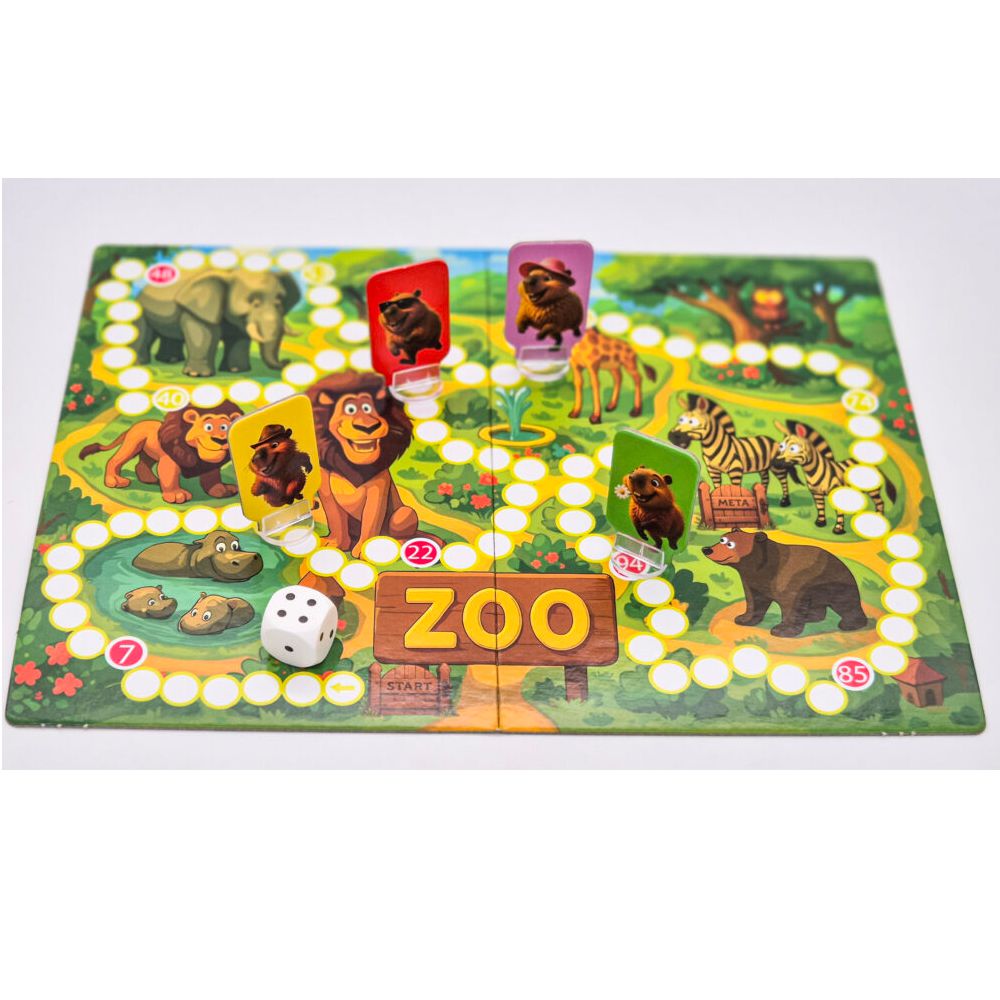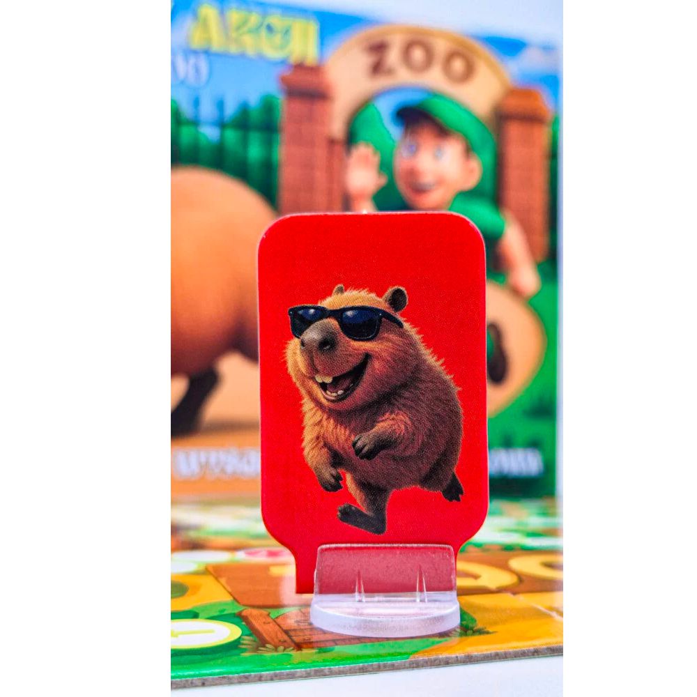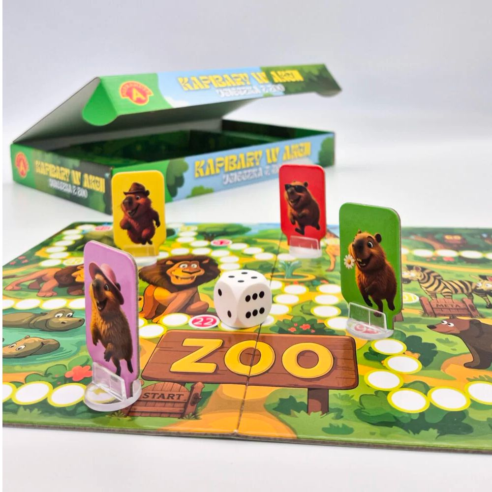 Kapibary w akcji - to rodzinna gra planszowa. Te sympatyczne stworzenia postanowiły uciec z zoo i teraz ruszają w szaloną podróż w stronę wolności. Na trasie czeka ich mnóstwo niespodzianek – spotkają przyjazne, ale czasem i nieco zdezorientowane zwierzęta: słonie, lwy, żyrafy, sowy czy hipopotamy. Wygrywa ten, kto pierwszy dotrze do bramy wyjściowej, gwarantującej wolność.