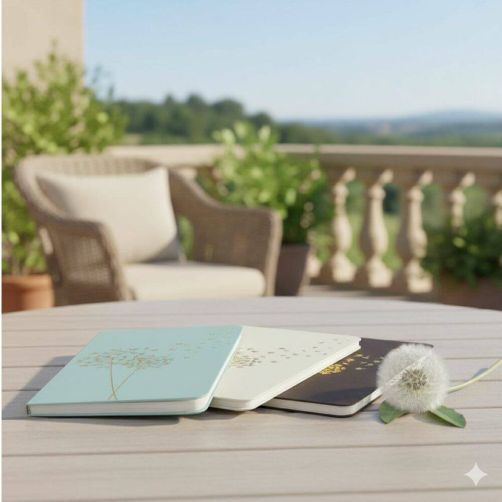 Zestaw trzech szytych notesów z serii Jotter marki Peter Pauper Press. W skład zestawu wchodzą 3 notesiki w kieszonkowym rozmiarze, każdy z okładką przedstawiającą ten sam motyw, ale w innej kolorystyce.