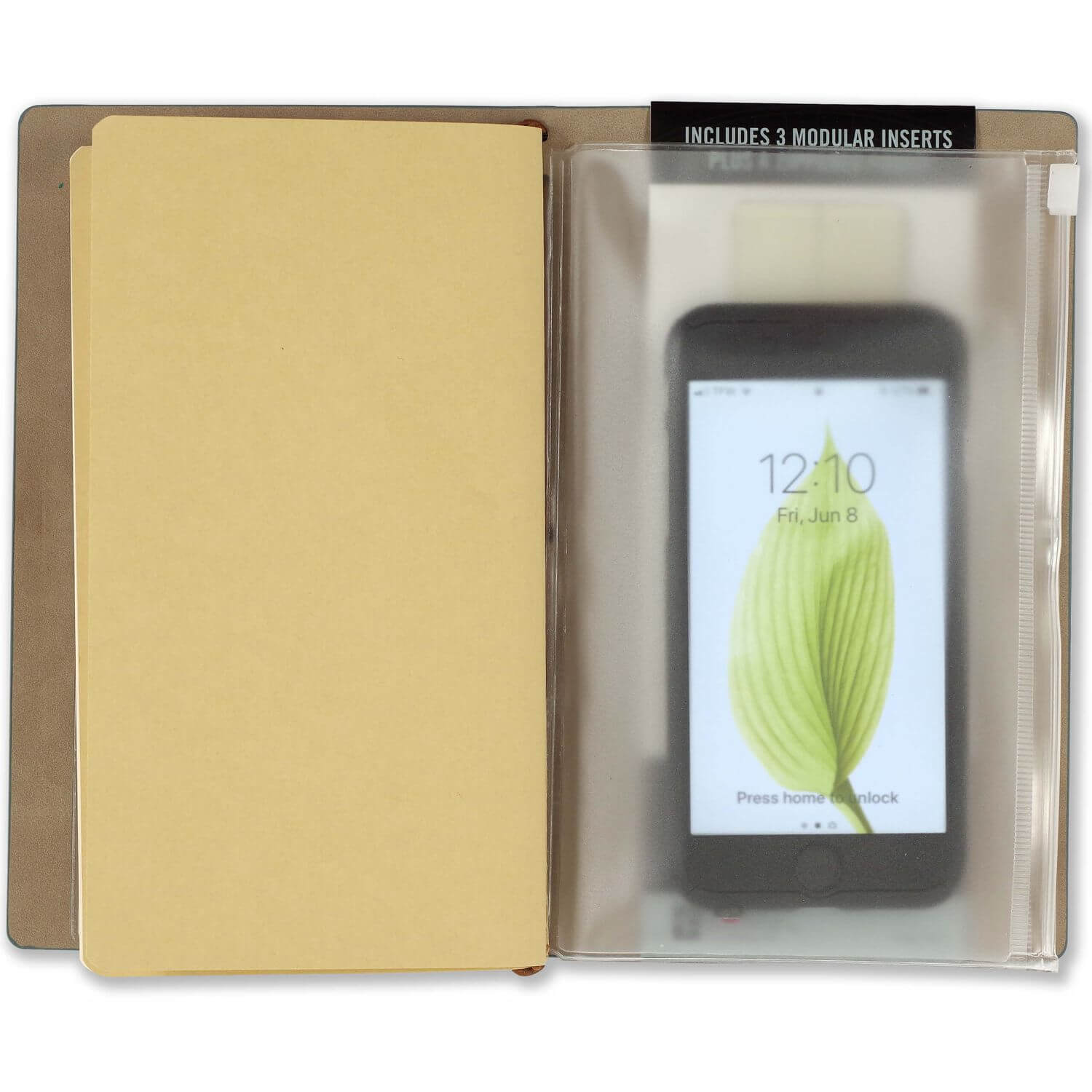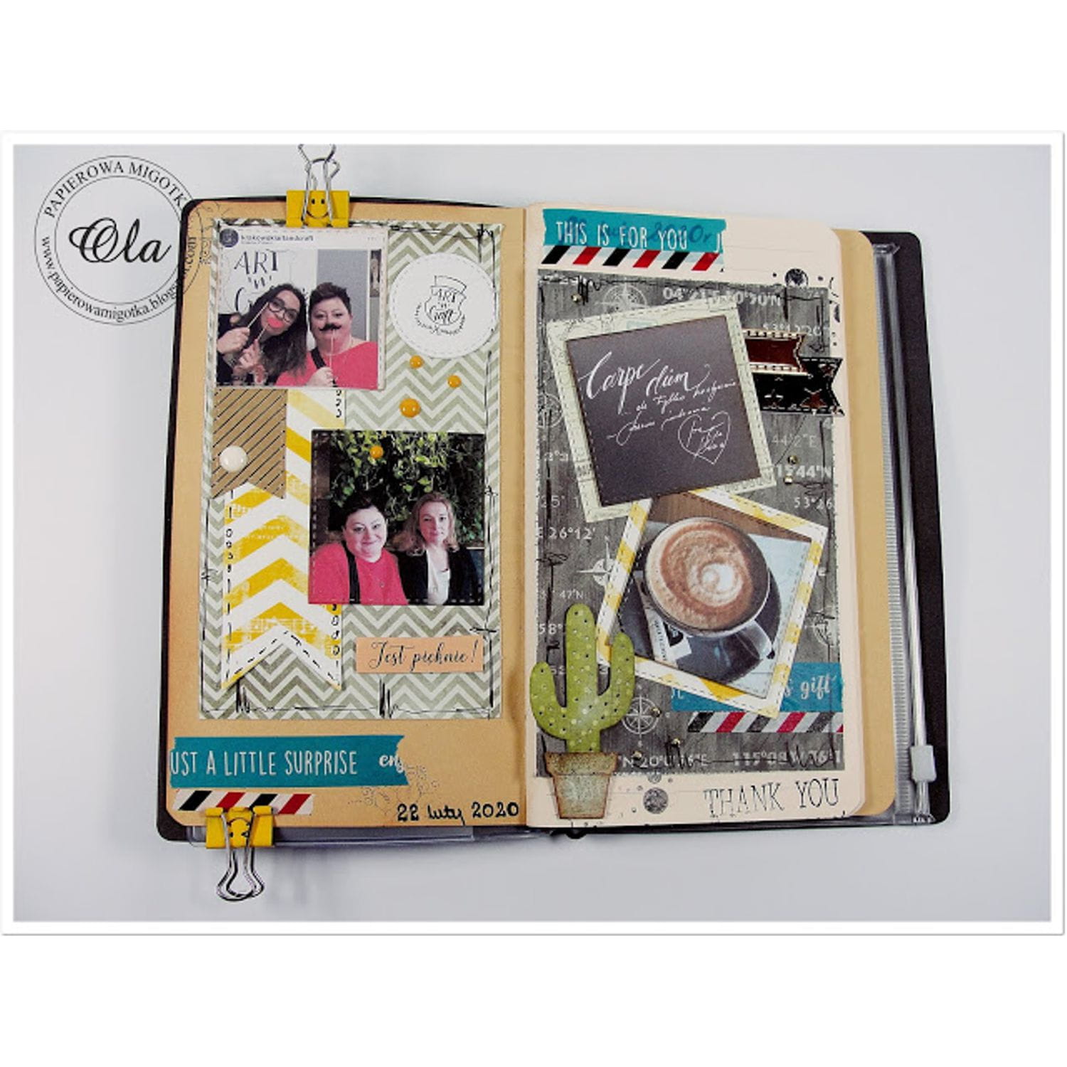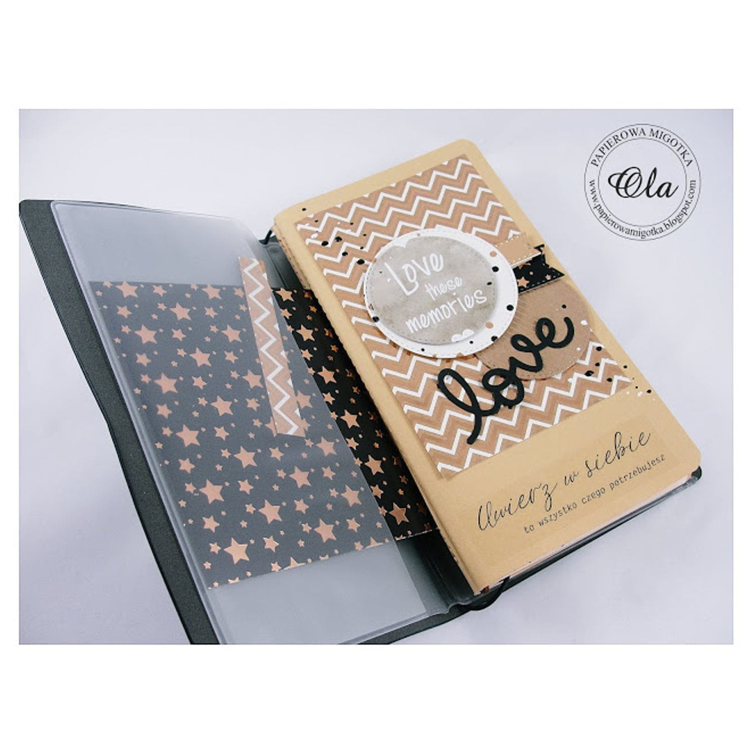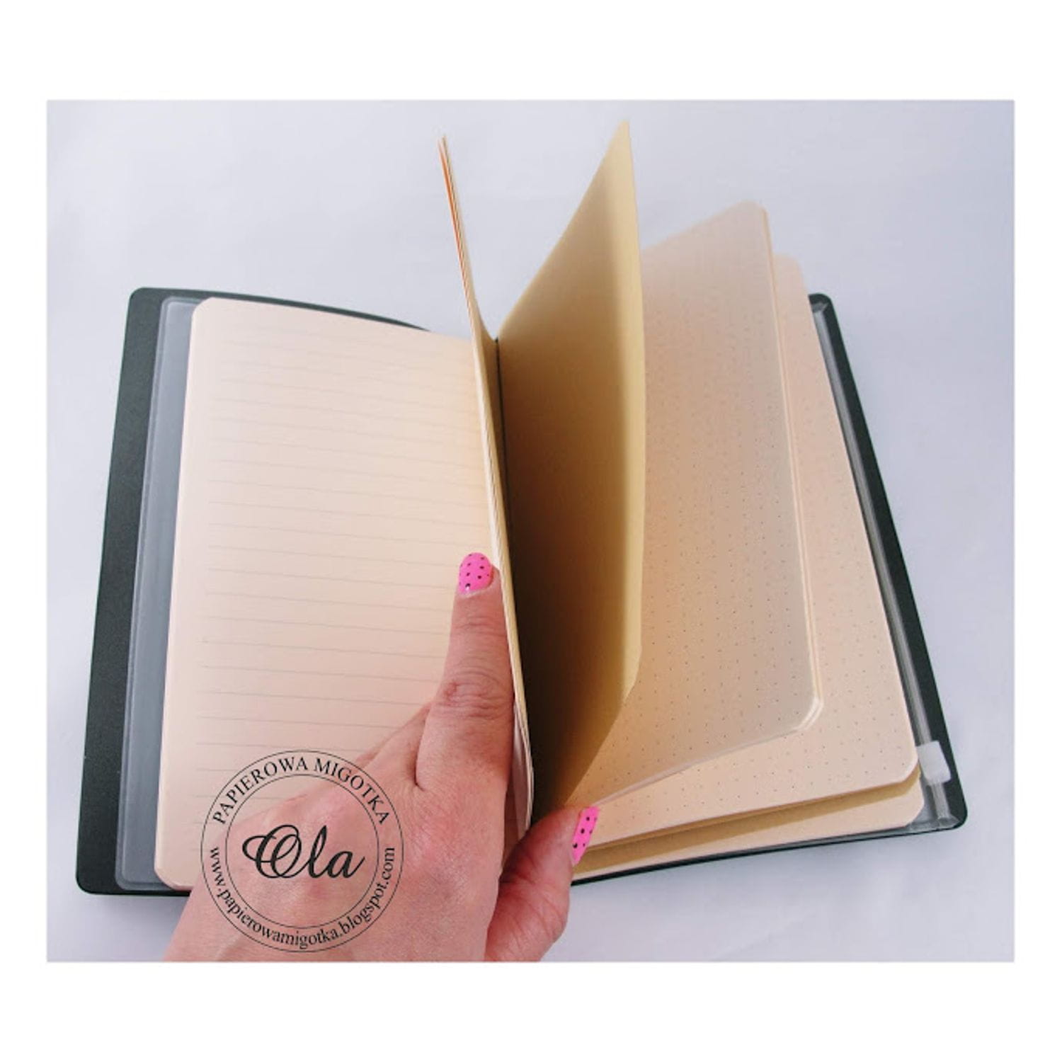 Notes w skórzanej oprawie, niezbędnik w podróży. Idealny jako bulletjournal, notes do letteringu, planer. Atrakcyjna oprawa ze skóry ekologicznej i zamknięcie na gumkę, w środku 3 wymienne notesy (w linię, w kropki i kraft). Dodatkowo na końcu znajduje się plastikowa zamykana saszetka.