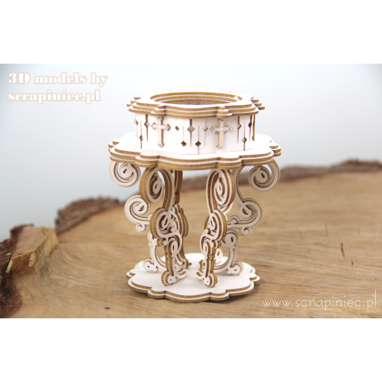 Model 3D chrzcielnicy do samodzielnego sklejenia. Elementy wykonane są z białej tektury o grubości 1,2mm.