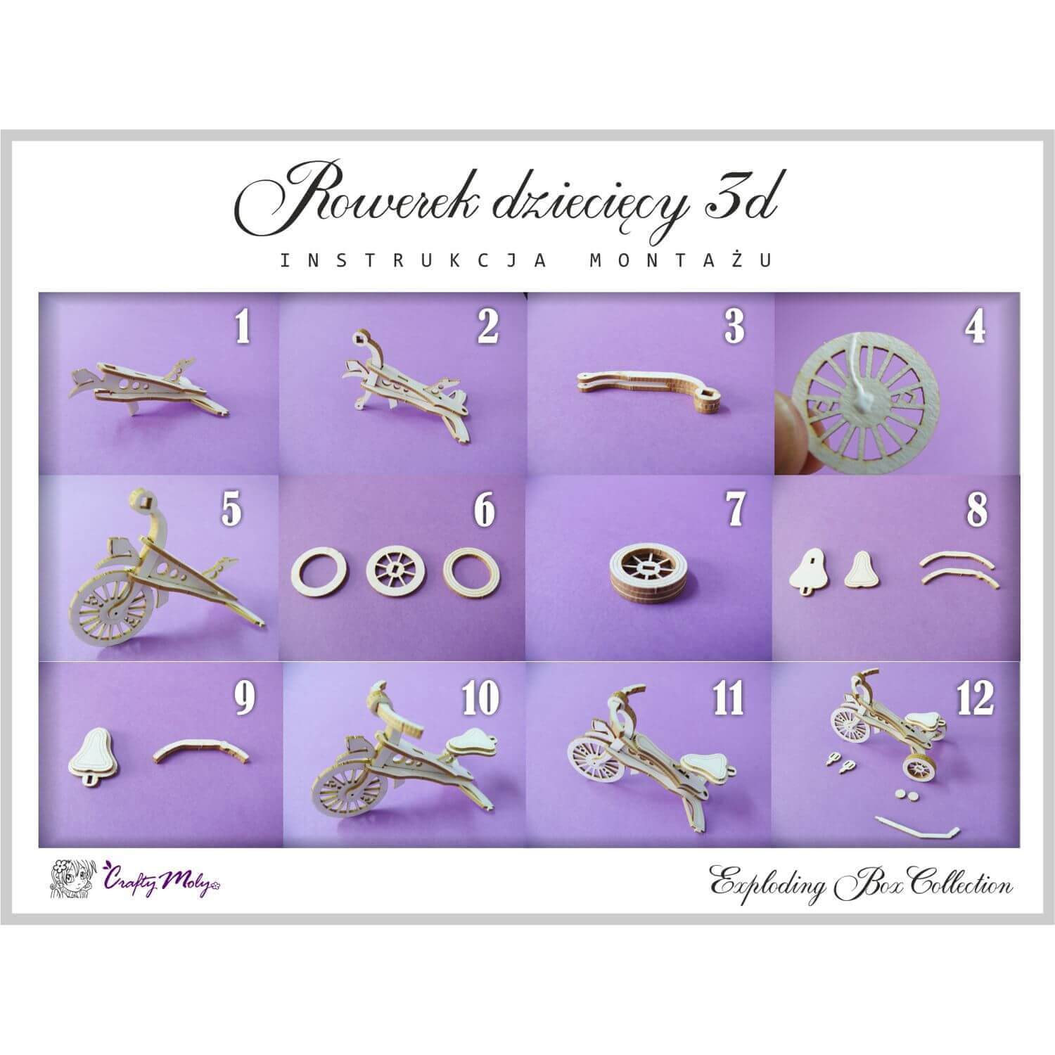 Tekturka - 3-kołowy rowerek, idealna do scrapbookingu, prac plastycznych. Tekturka 3D do samodzielnego złożenia, sklejenia. Idealna jako dodatek do boxów.