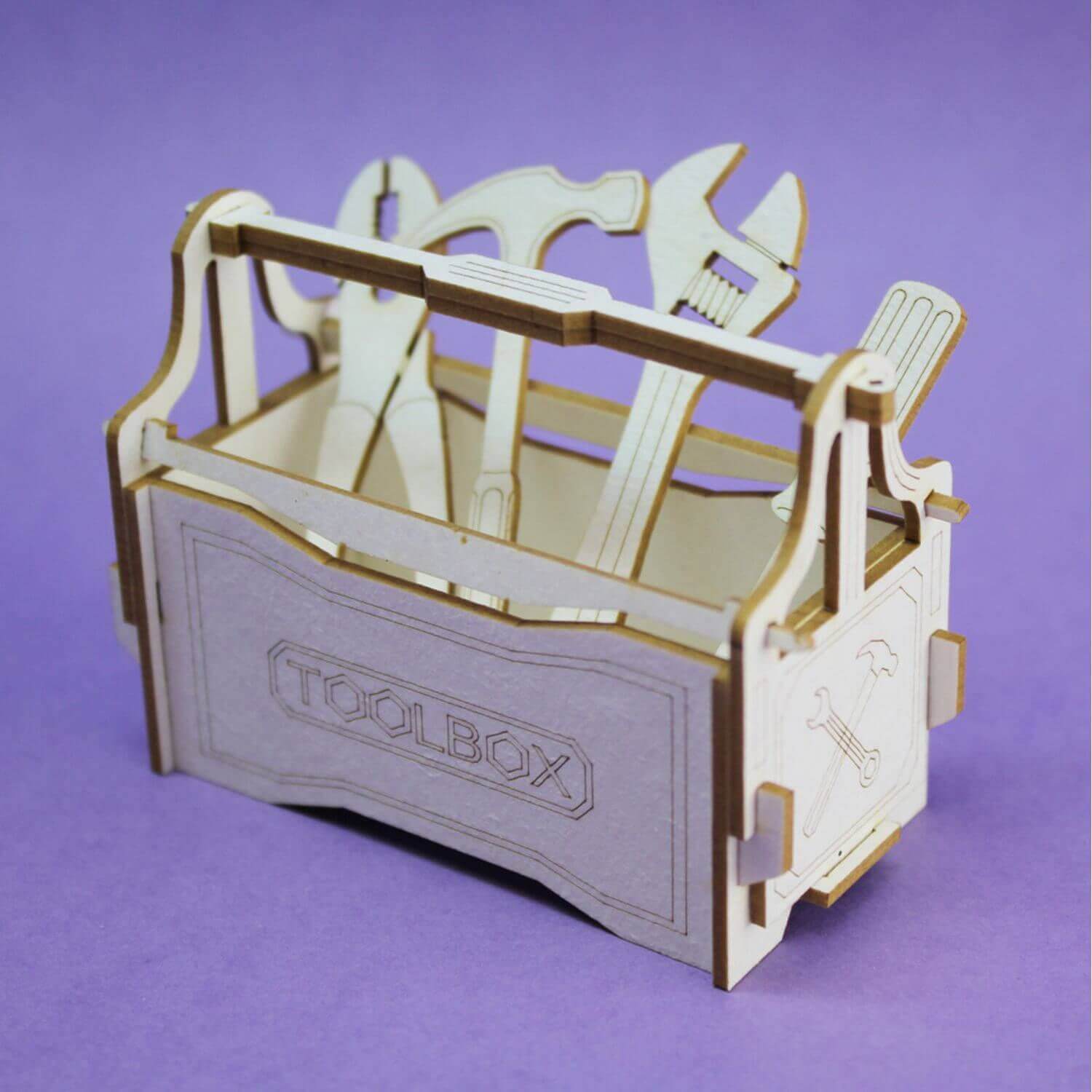 Tekturka - skrzynka narzędziowa, idealna do scrapbookingu, prac plastycznych. Model 3D do samodzielnego sklejenia.
