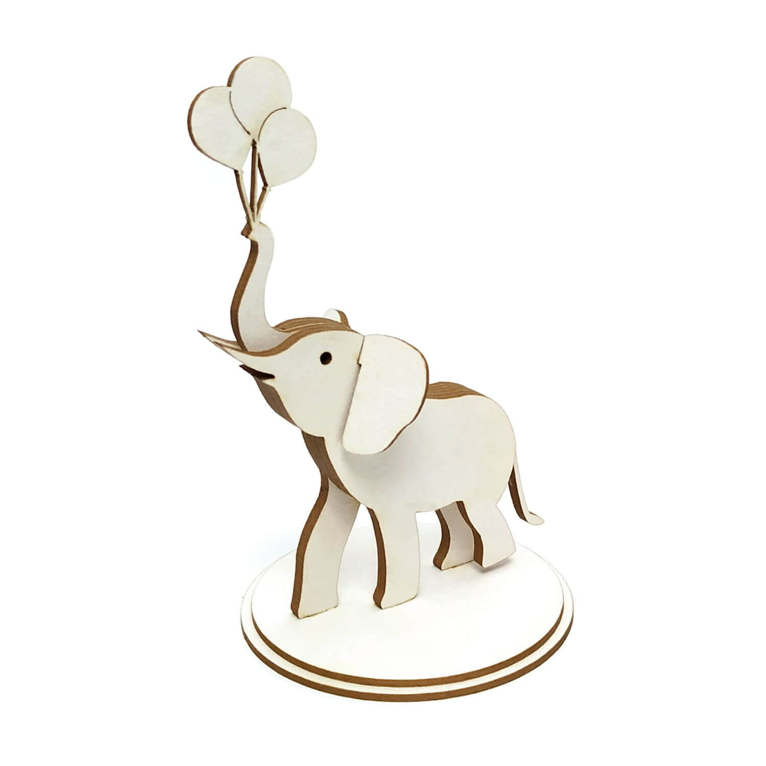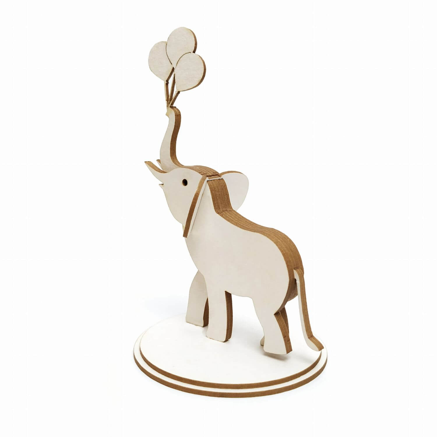 Tekturka - słonik z balonami, idealna do scrapbookingu, prac plastycznych. Model 3D do samodzielnego sklejenia.