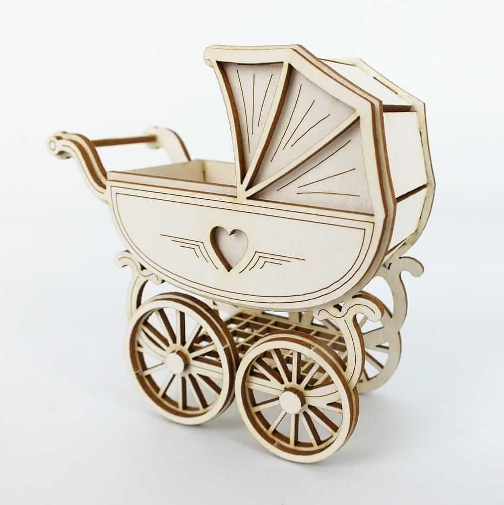 Tekturka - wózek dziecięcy, idealna do scrapbookingu, prac plastycznych. Model 3D do samodzielnego sklejenia.
