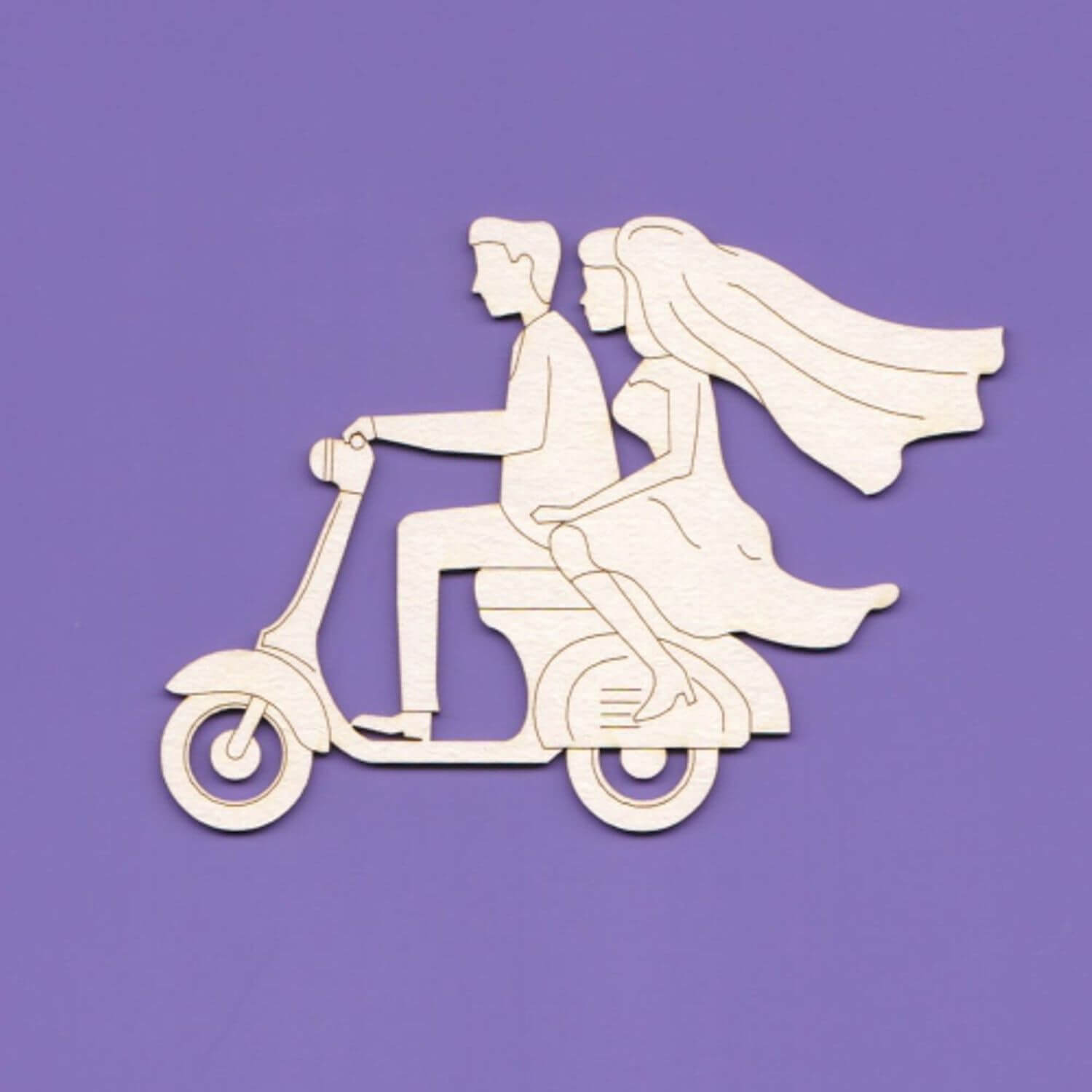 Tekturka para na skuterze - świetna do ozdabiania kartek ślubnych, boxów, projektów kreatywnych. Tekturkę można malować, ozdabiać brokatem, przyklejać.